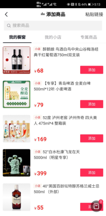 2、点击购物车标志的【商品】按钮,即可进入选品页面,选择商品的方式有如下几种: