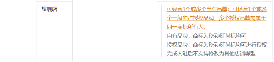 下面这张表罗列了各类型店铺对应的品牌资质和相关介绍~ 快来看看你的店铺类型叭!