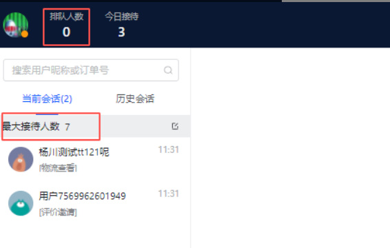 最大接待人数小于5时,会话页顶栏会提示客服尽快调整最大接待人数