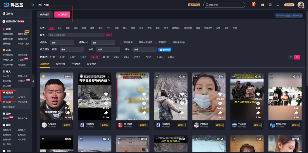 展示当下最热视频,以点赞、评论、分享等综合排序,查看不同状态的最火热视频,助力您追踪实时热点。