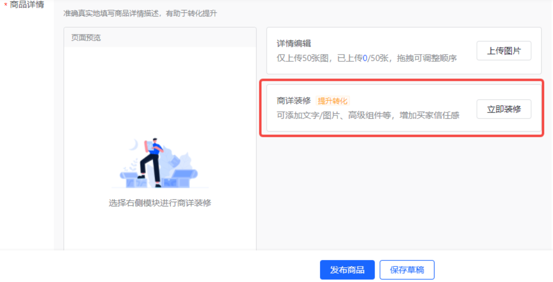 入口位置:抖店商家后台-【商品创建】-【图文信息】-【商详装修】