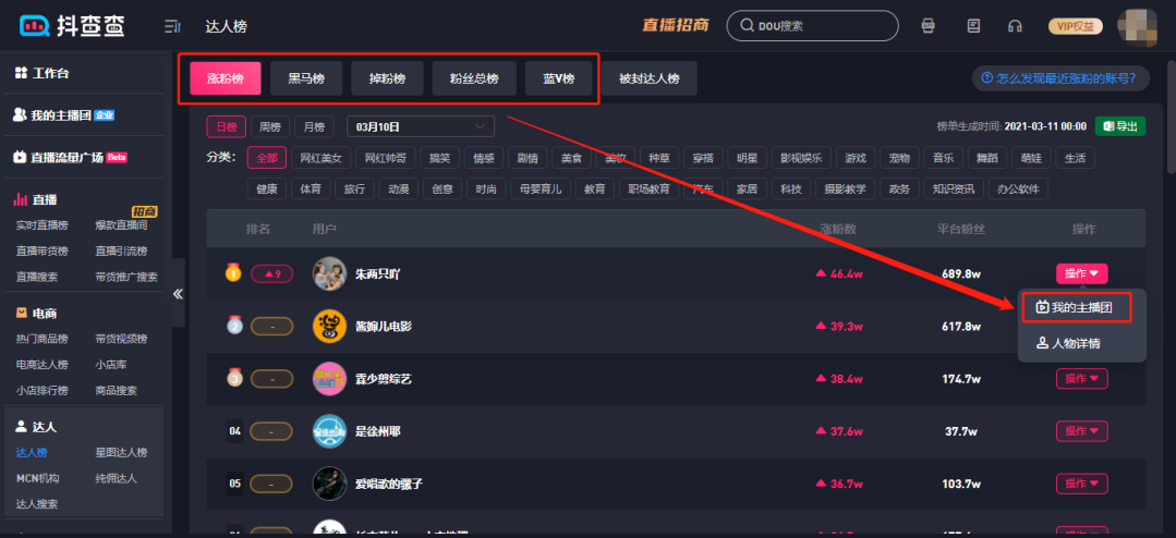 随着企业或MCN机构对旗下达人直播的不断重视,抖查查特为有管理主播团队的企业或机构开发了“我的主播团”功能,接下来让我们一起来了解主播团功能吧。