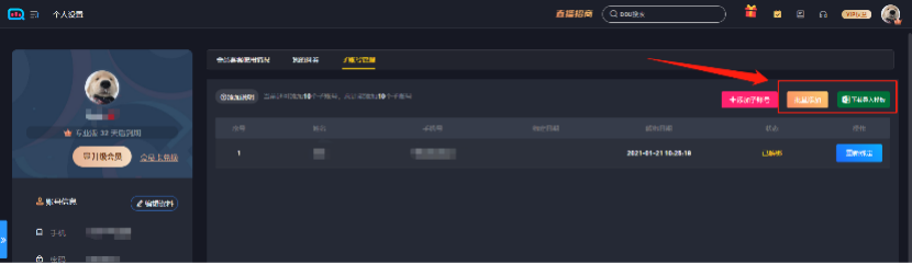 首先需点击【下载导入模板】按钮下载模板表格。根据表格内的示例填写好表格后点击【批量添加】按钮,选择编辑好的表格,点击【确定】即可。待对方同意后,即可成为您的子账号。