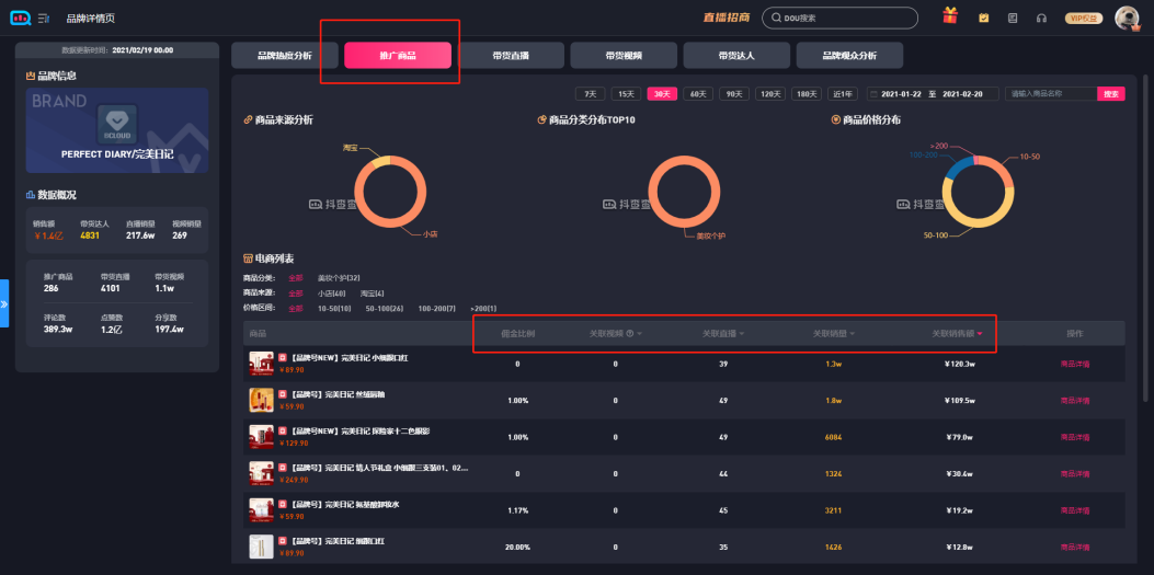 我们可在【关联商品分析】里找到该品牌的带货视频,以便您更快选择心仪的推广商品。